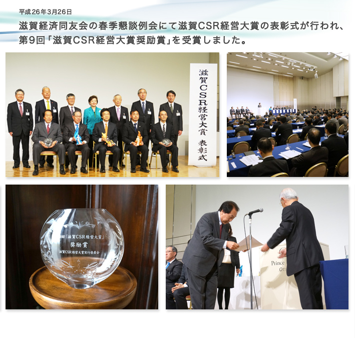 滋賀経済同友会の表彰式にて「滋賀CSR経営大賞奨励賞」を受賞しました。